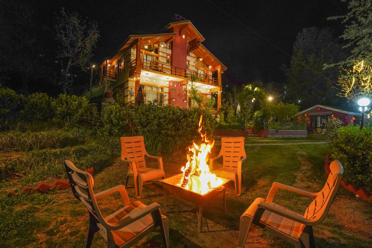 Viraam is a beautiful 5 room cottage ( drive in ) in a village 6 km from Manali mall road. Our spacious rooms offer beautiful view of the mountains allowing you to immerse yourself in nature. We have common spaces to relax , whether in front of the fireplace or our spacious balconies, the cottage has beautiful garden space with a fire pit for bonfire . If you need to stay connected during your stay, we have wifi & power backup to ensure that you can work without any interruptions.