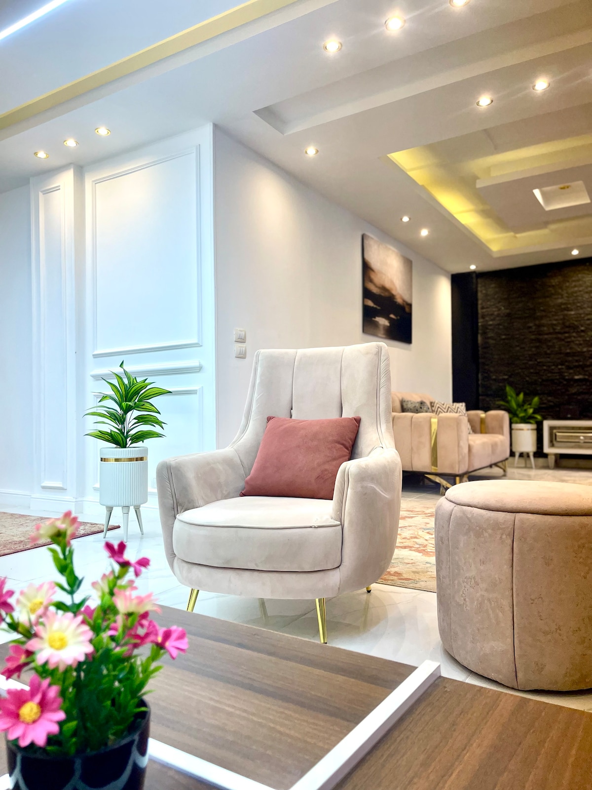 Welcome to this amazing, spacious basement apartment located in the elite neighborhood of El Shouyaifat, New Cairo. While it's a lower-floor unit, it’s been expertly designed by a top-tier interior designer, transforming it into a luxurious sanctuary. Immaculately clean, stylish, & very large, this basement offers an incredible living experience, just seconds from downtown New Cairo & its hotspots. Be sure to read the house rules before booking. Experience luxury in a basement like never before!