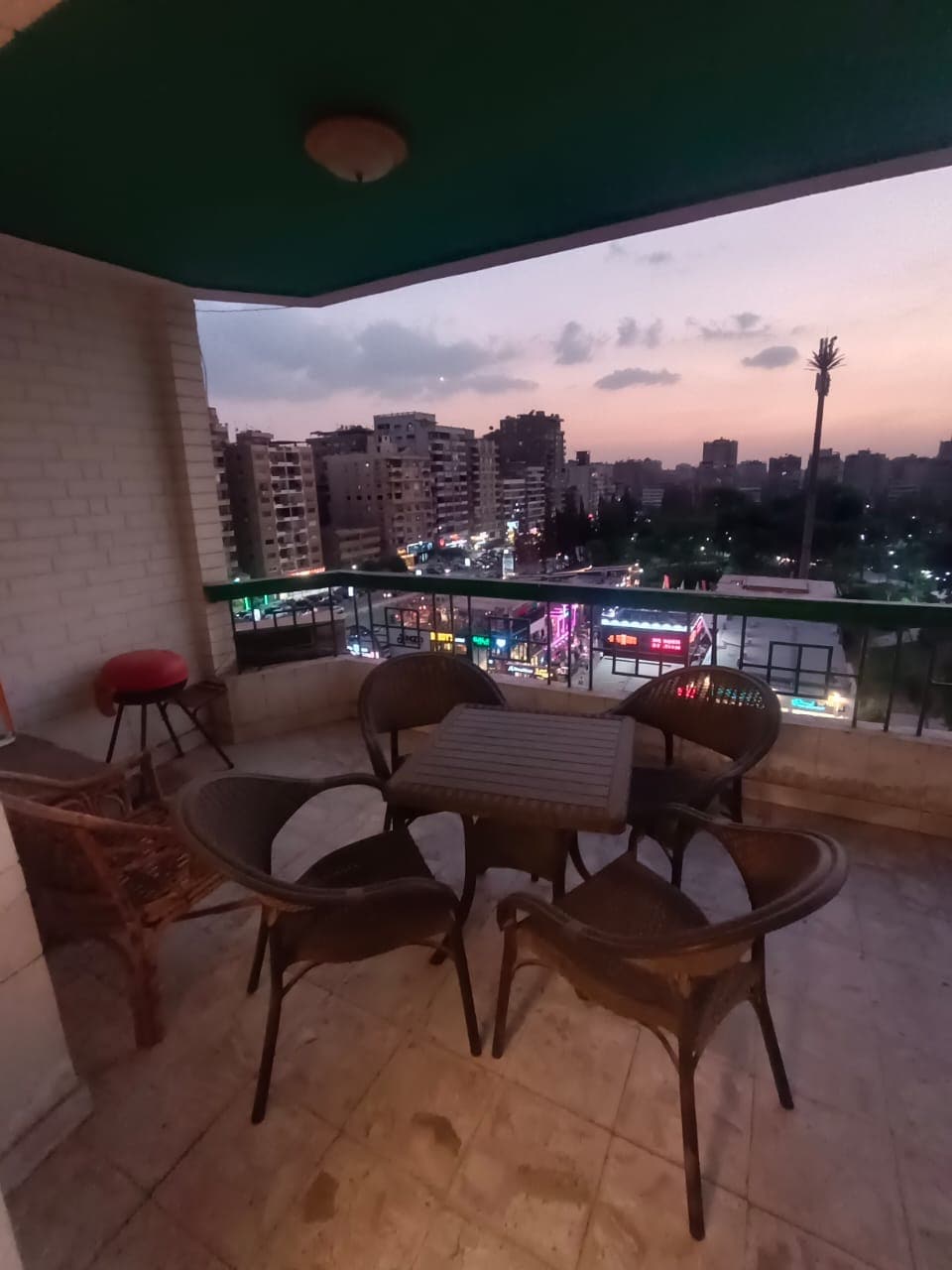 It consists of a bedroom, living room,American kitchen bathroom. it is located in the center of Nasr City, in one of the upscale street, close to all services, a few minutes walk from many restaurants, cafes, shopping centers and malls. In beautiful building, decorated with trees and flowers, the studio includes a terrace with a barbecue area, water fountain, outdoor seating, We must also tell you it is on the 4th floor and there is no elevator. We are sure that you will love the place very much