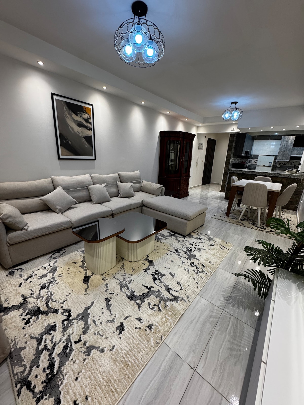Brand new luxury apartment with hotel-style finishing and first-time use. Located in a prime area behind Costa Coffee, Nasr City. The apartment features 3 bedrooms including a master, 2 balconies, 2 bathrooms, a large reception with a dining area, and a 50 sqm rooftop terrace with a pergola. Fully furnished and equipped with 5 air-conditioners, 2 TVs, and a complete kitchen (fridge, washing machine, dishwasher, oven, microwave, cookware). Perfect for comfort, style, and convenience.