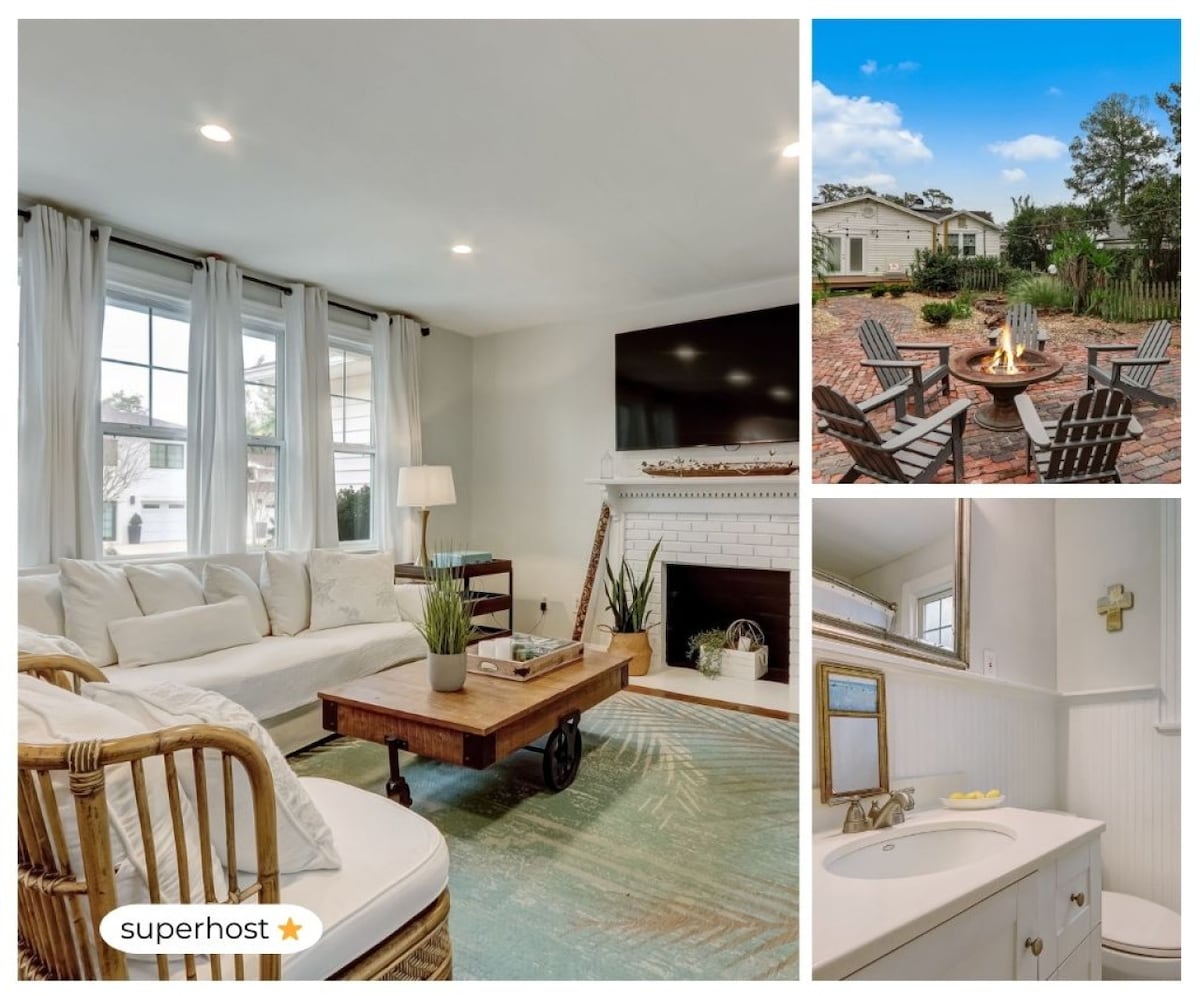 This charming bungalow is located in the heart of walkable Riverside; Jacksonville's most fun neighborhood. Enjoy a king bed, smart speakers, fast WiFi, and streaming channels, as well a fully stocked kitchen and a backyard with adirondack chairs, an electric grill, a fire pit, and even 'smores kits. Use our custom recommendation guide to explore local shops and restaurants on our cruiser bikes (complete with cup holders and cell phone holders). Private driveway parking is included, too.
