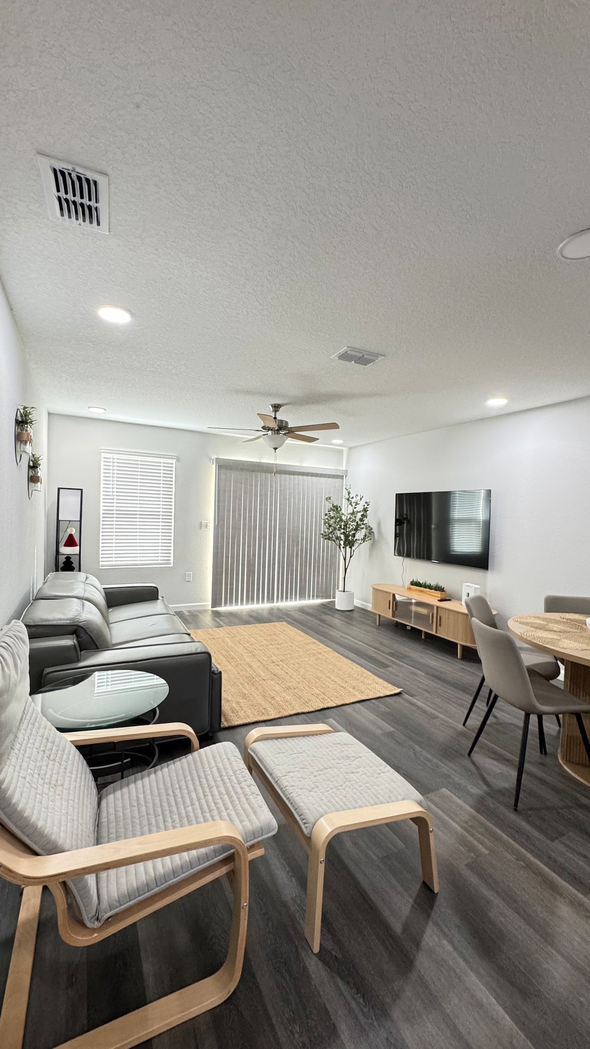 The house was built in 2023, with 4 bedrooms, 2 baths, full kitchen, living/dining room and laundry. There’s a 6 car parking lot + a 2 car garage. Trailers and RVs are welcome (driveway is 60ft long). The back of the house has a fully fenced backyard with a fire pit and grill. In total, 8 people could fit comfortably, though up to 9. If you're staying over the duration of 28 days and would like something added, please let me know. I'll do my best to accommodate all my guests!