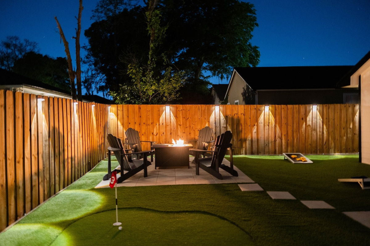Have fun with the whole family at this stylish newly renovated home. Everything is modern & BRAND NEW! Enjoy a nice cozy evening in the backyard next to the fire. We have a king size bed in the master including a private FULL bathroom with a stand-up glass shower. The 2nd bedroom has a queen size bed next to the 2nd bedroom that has a garden tub. The living room couch pull outs & makes for queen bed. Each room has a smart tv with all your favorite shows.