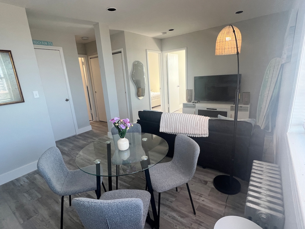 Welcome to your beach escape! This 2-bedroom apartment sits on the top floor, giving you beautiful beach views and breezy natural light. One block from the sand, its a perfect spot for morning strolls, and incredible sunsets. Two bedrooms, a pull-out couch for extra guests, a fully equipped kitchen, and a cozy living space to unwind after the beach. Blocks to the LIRR, 50 minute train from penn station! Walkable to restaurants, cafes, and the boardwalk—your ideal Long Beach getaway starts here.