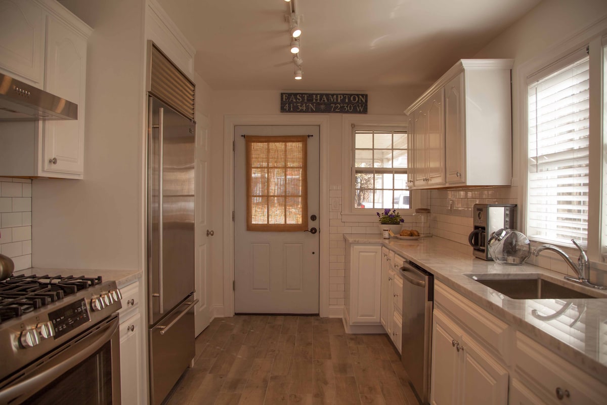 Completely renovated 3 bedroom home on working farm with fire place and piano. Lux kitchen features stainless steel appliances, Sub-zero refrigerator, and marble counters Private, fenced backyard with BBQ. Farm has goats, pigs, chickens, bee hives, ducks, and on-site cafe and bakery. Close to Huntington village, bike trails nature walks, restaurants, parks, and the beach. Fast wi-fi, laundry access and pet friendly. New beds and baby grand piano. Bedrooms have black out curtains.