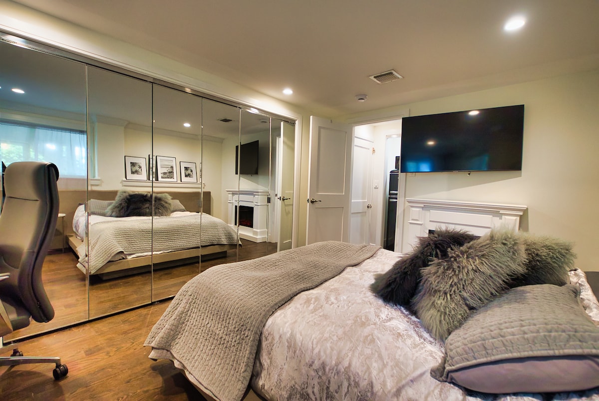 The Serenity Suite is a functionally designed, open concept, lower level space with its own PRIVATE entrance, kitchen, bedroom, bathroom and seating areas. With a clean contemporary design and furnishings, The Serenity Suite provides a cozy, serene and safe environment. Unwind and relax, in this newly renovated suburban Suite located 10 mins. from the UBS Arena and Belmont Park, 5 mins from the Belt and Southern State Parkways, 15 mins from JFK, 10 mins to LIRR and 25 mins to LGA.