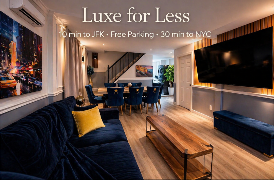 Luxury, Family friendly, modern decor home. Great for relaxation and comfort. It’ll give you that home away from home feel. 30 min train ride to New York city. 12 minute drive to JFK airport. 6 minute drive to UBS Arena. Open floor plan and a full outdoor kitchen makes spending quality time with friends and loved ones effortless. Enjoy all the characteristics of suburbia yet still be close enough to partake in city adventures.