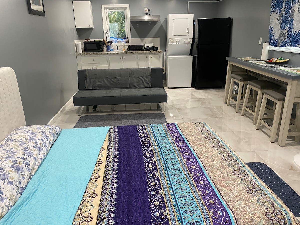 Discover the perfect escape at Cozy Getaway! Nestled centrally on New Providence, our charming traditional home offers a secluded retreat with keyless entry. Featuring 1 bedroom with an orthopedic queen bed, a full bath, and a fully equipped kitchen, it's your ideal space for a vacation, romantic getaway, or business trip. We're just a 7-min walk to public transportation, 3-5 min from the supermarket, and an 8-min drive to the nearest beach. Experience the simplicity of comfort and convenience