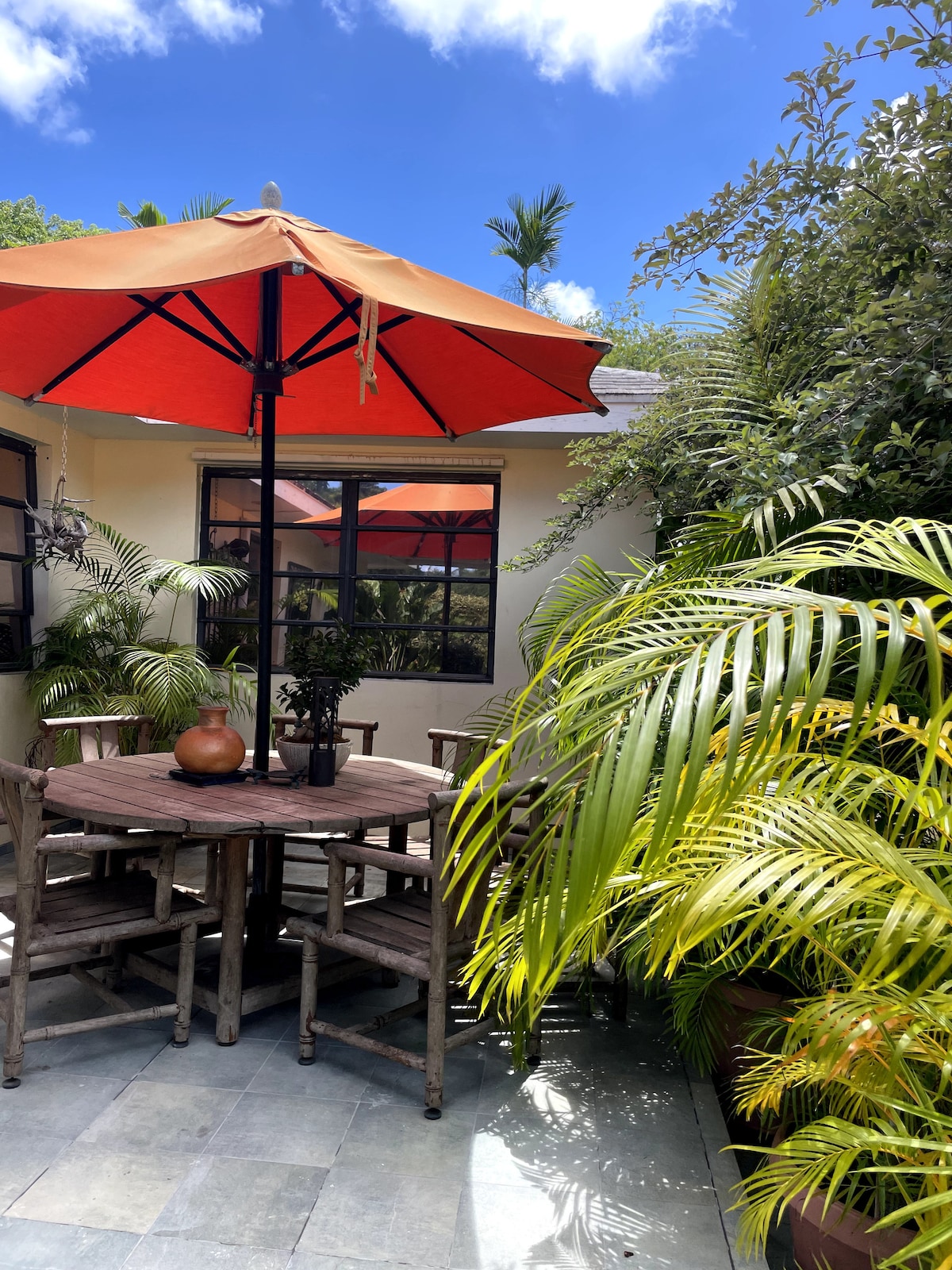 It's better in the Bahamas! Newly renovated apartment within our home. One bedroom, one en-suite bathroom, kitchenette, living room area & sofa bed. Located in a quiet neighborhood, surrounded by lush greenery a short distance from downtown Nassau, embassies, hospitals and Paradise Island. A morning cup of coffee on the patio will give the escape you've been seeking! Come and relax in this calm, stylish space. Minimum stay requirement of 2 nights. Enquire first for 1 night stays :-)