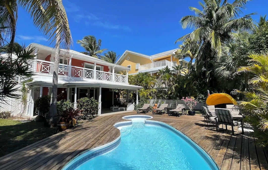 Perfect Bahamian getaway. 🌴✨ Just steps from the shoreline, this beautiful vacation rental offers an ideal island escape. Once a traditional Bahamian family home, it has been thoughtfully transformed into a refined retreat. The property also includes three additional cottages, which can be booked together with the main house for larger groups or added privacy, or separately. Please note that there is construction next door, and occasional daytime noise may be heard outdoors.