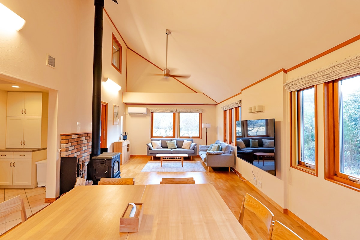 Villa with private sauna limited to one group per day "Kito NASU" is now open. Fully equipped with furniture and appliances, this accommodation is comfortable even for long-term stays. The stylish and spacious 3LDK space is In addition to air conditioning, floor heating and wood stoves are also available. We are fully equipped with all the necessary facilities to make your stay comfortable. 1 queen bed on the first floor 2 single beds on the 2nd floor Can accommodate up to 4 futons