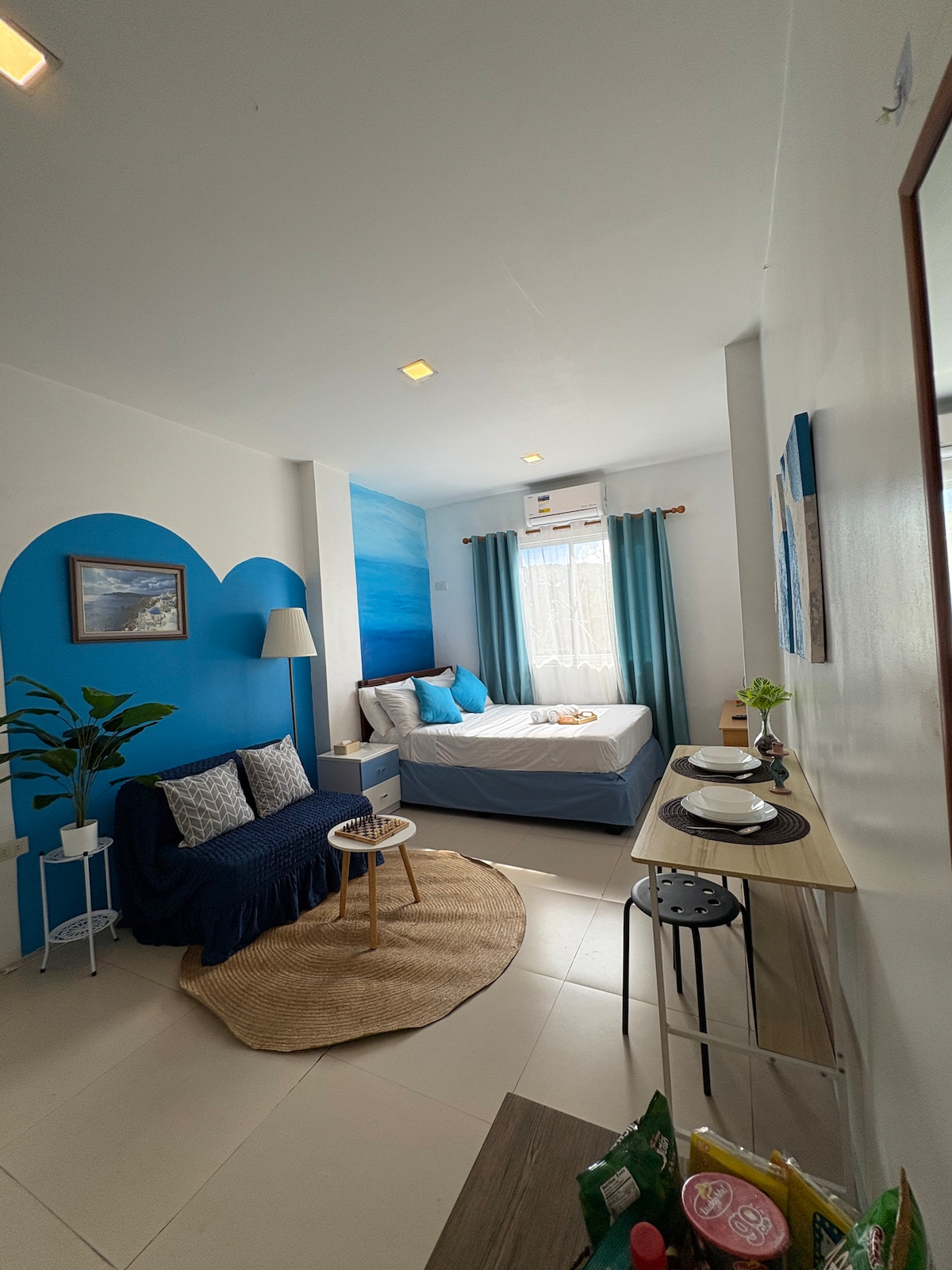 We’ve brought the soothing charm of Cote d’Azur to our home. We focused on a simple white on white design with splashes of coastal colors to give you the cool, fresh feel throughout the place. When you’re ready to take a breather, know that Nautica can provide you that laidback vibe and cool Tagaytay breeze where you can rejuvenate and unwind. For you utmost comfort, fresh linens, blankets, pillow covers, towels, shampoos and soap are all provided.