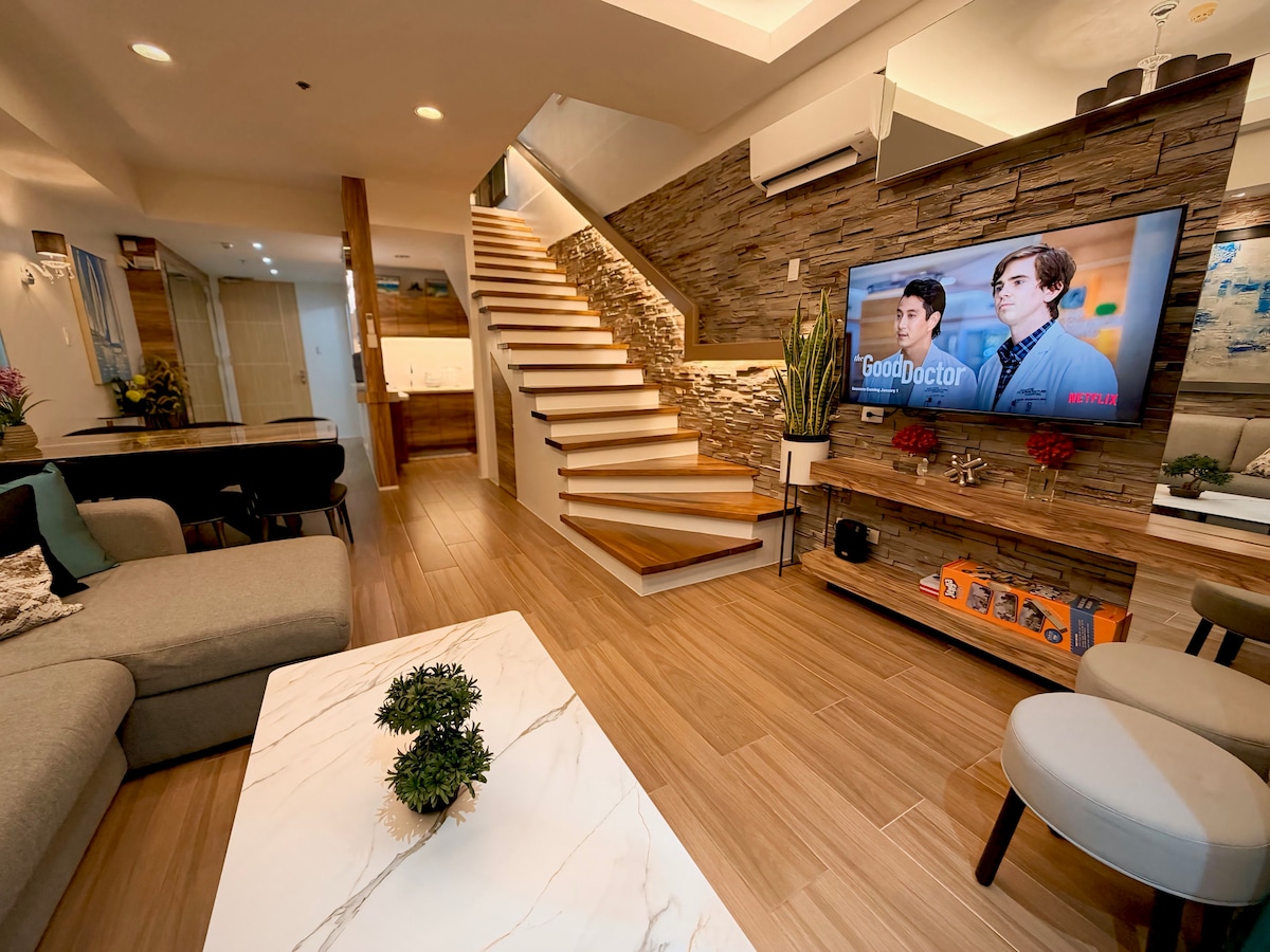Welcome to Yugen Suites 701 – our premium designer penthouse retreat where minimalist Japanese style meets the coastal beauty of Pico de Loro. Perched on the top floor of Miranda B, this newly renovated 47 sqm space offers fast Wi-Fi, a Smart TV, a full kitchen, private bath, and serene views—perfect for restful escapes, family stays, or remote work. ––– CAPACITY ––– Strictly for a maximum of 6 guests (including kids aged 1+). Only endorsed and registered guests are allowed inside the unit.