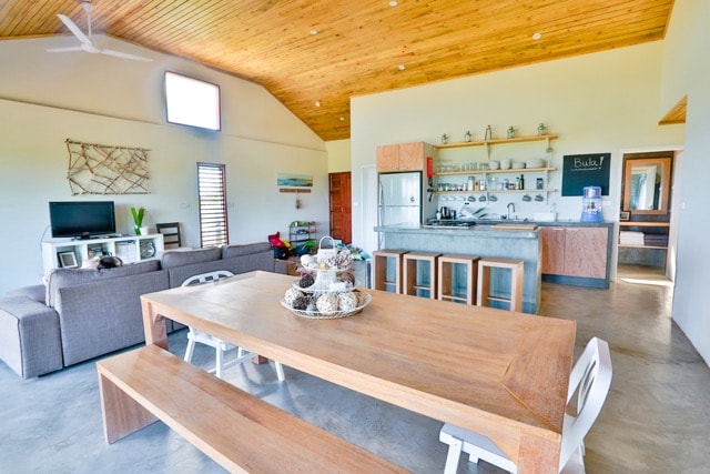Set in the residential/resort area of Korotogo, the house is private and comfortable and also within walking distance of several local restaurants. Surrounded by lush private gardens with ocean views and the sound of the waves crashing against the outer reef, the sailors retreat has a relaxed vibe and a clean modern feel. Suitable for a group of friends or a family. The kitchen is also fully equipped for self catering with a large outdoor dining/relaxing deck with ocean views.