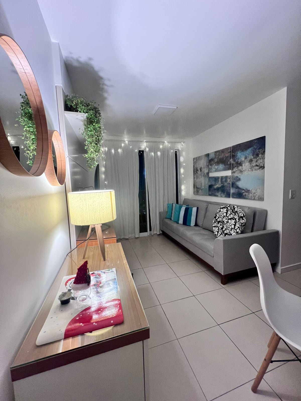 Apartamento de 50 m², com 1 quarto, sala, cozinha e varanda, de frente para o mar e para a famosa Praia de Ponta Negra. Trata-se de um flat extremamente novo, confortável e aconchegante, aparelhado por ar condicionado, Smartv de 50 polegadas com acesso à Youtube e Netflix, com TV à cabo e internet, além de contar com uma belíssima vista para o mar e morro do careca. A cozinha é equipada com louças, talheres e utensílios diversos, geladeira inox, cooktop, microondas, cafeteira e mesa de jantar.