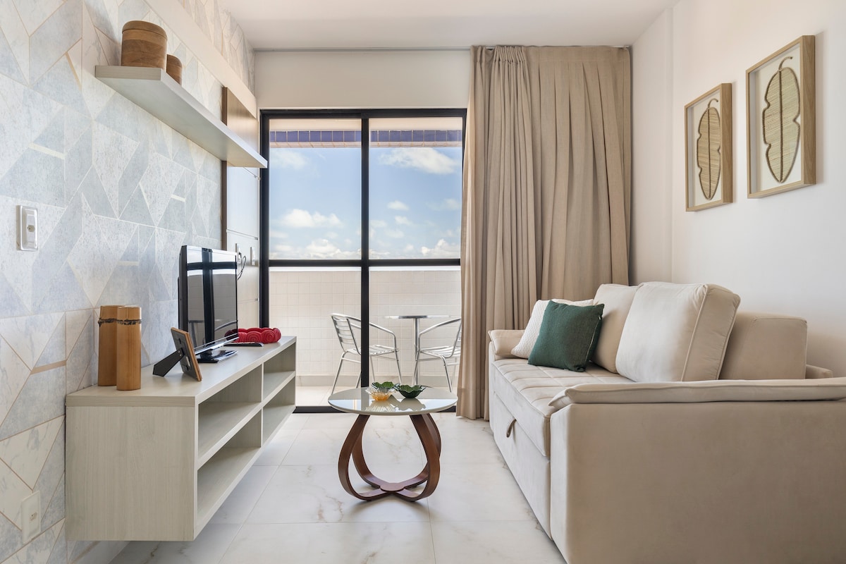 There’s a progressive discount starting from 2 nights. Apartment at Hotel Ponta Negra Flat, in a prime location, just 300m from the beach on the main street. Close to craft fairs, tourist attractions, live music, restaurants, currency exchange, supermarkets, bakery, tours, public transport, car rentals, surf lessons, massage therapists, and bike tours—all within a 300m radius. The neighborhood is the most vibrant in the city for nightlife