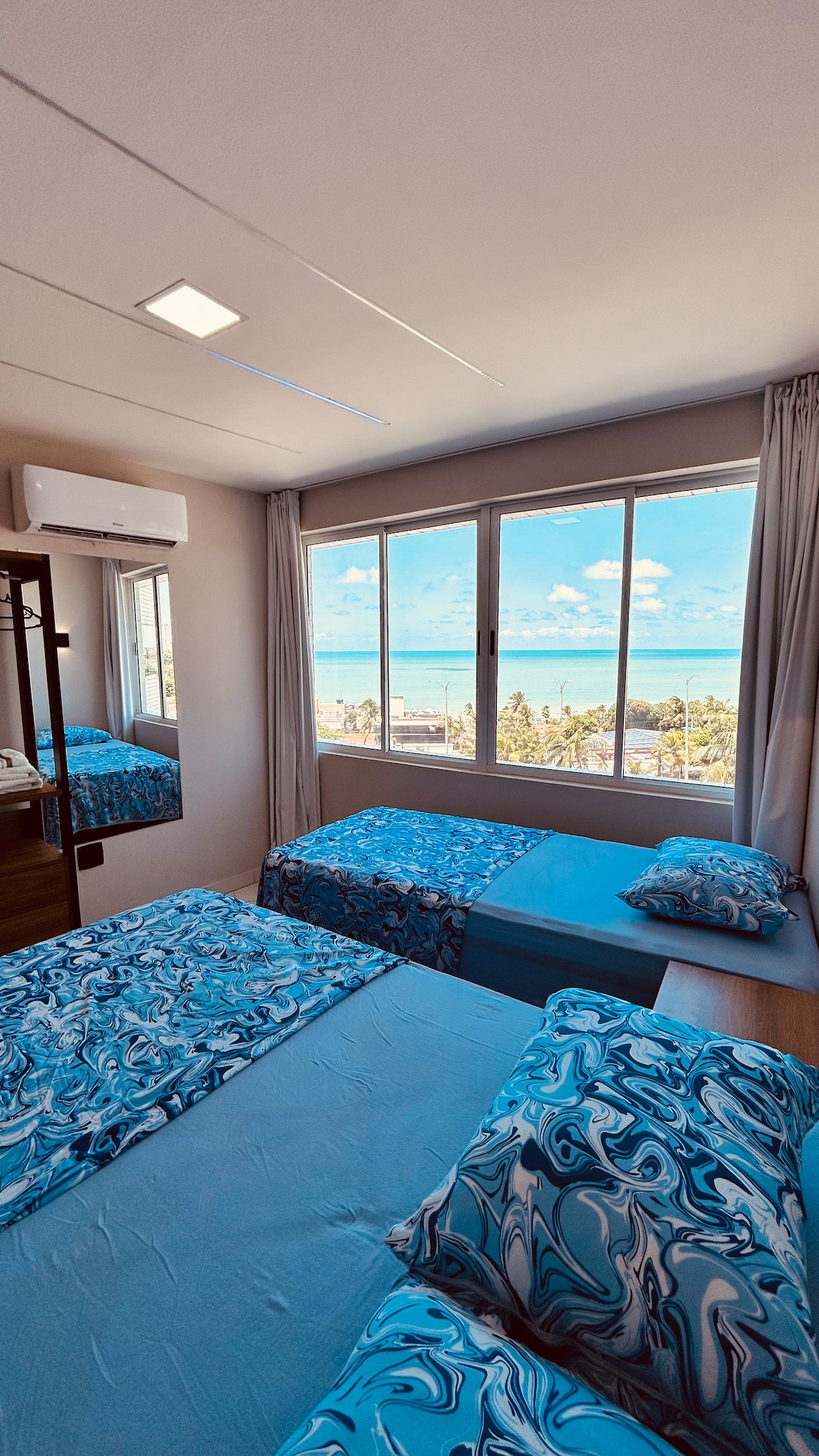 Stay just 100 meters from Ponta Negra Beach in a newly decorated, bright, and comfortable place featuring an incredible 180° oceanfront view. Modern, well-maintained, cozy and fully furnished. High-speed 400 MB fiber-optic Wi-Fi Residential tower, 24/7 concierge, 2 elevators, covered parking spot. Located in the best area of the beach, close to cafés, restaurants, and major attractions. Only 3 km from the Natal Convention Center. Perfect for families, business travelers and digital nomads.