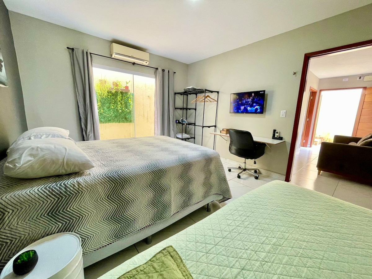 Loft charmoso com bom espaço verde, ideal para famílias. Apenas 6km de Ponta Negra, onde fica o morro do careca e 15km de Pirangi, onde está localizado o maior cajueiro do mundo. Temos muito cuidado com limpeza, lençóis e toalhas de qualidade. Ambiente 100% climatizado. Contamos com CARREGADOR DE CARRO ELÉTRICO! Obs: Vaga rotativa, apenas para carregar. Valor da carga: R$ 11,00/h