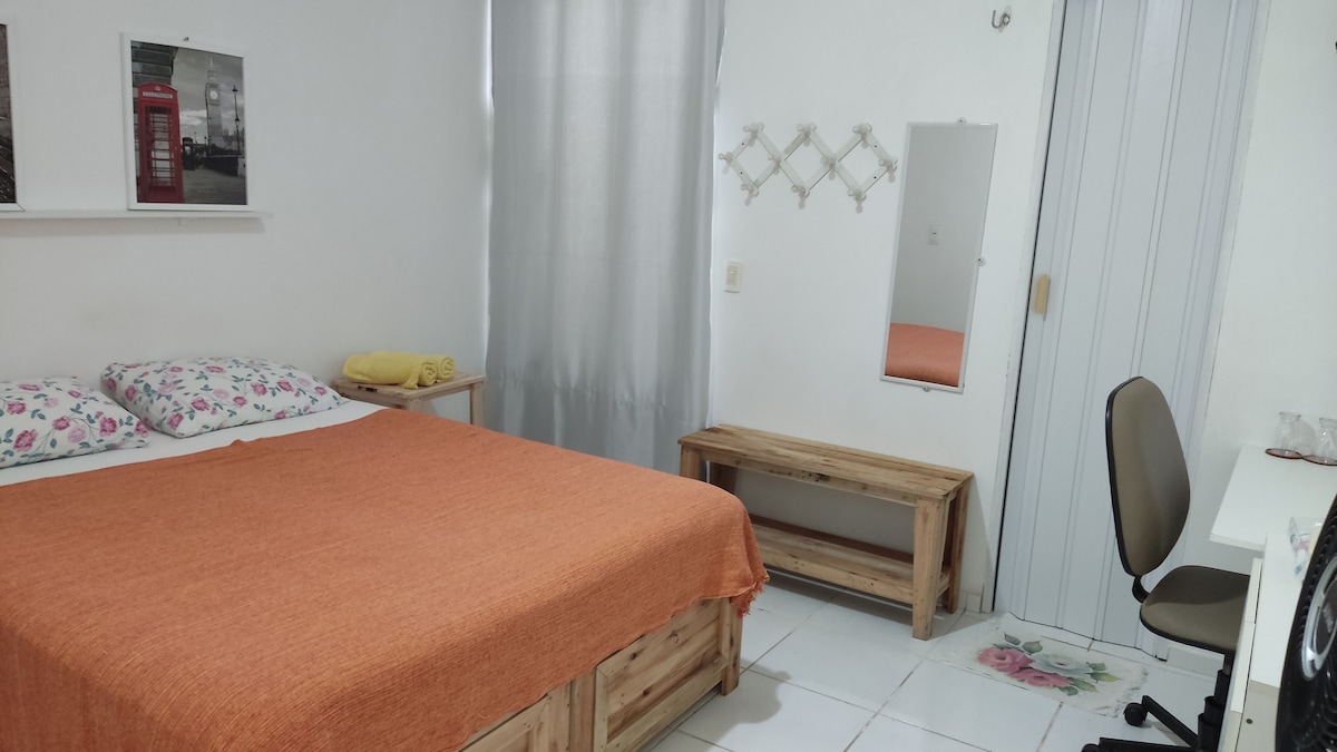 Suite simples e muito limpa. Ao escolher nossa acomodação, você terá um quarto com banheiro e uma cozinha privativos, sem áreas compartilhadas. Estamos convenientemente localizados a apenas 700 metros da Praia de Ponta Negra, e a uma curta caminhada do Morro do Careca. Oferecemos uma cama queen-size, uma cozinha bem equipada, ar condicionado, ventilador, TV smart e chuveiro elétrico para o seu conforto. Além disso, fornecemos roupa de cama e banho. UFRN - 6.9 km Centro de convenções- 1.9 km