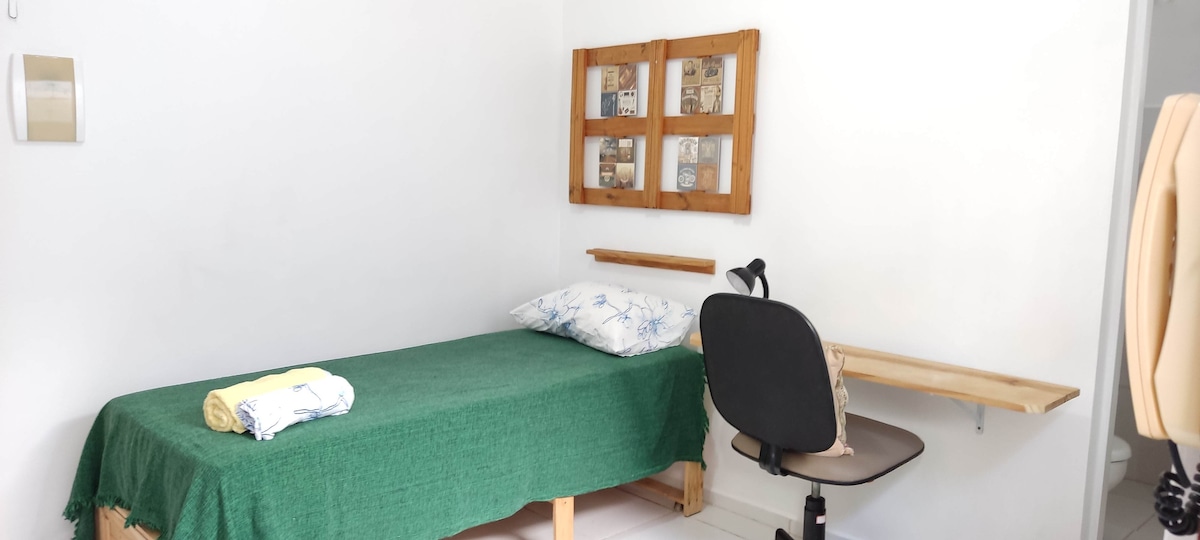 Quartos em ambiente familiar, com ou sem ar-condicionado. Área comum com piscina, churrasqueira, cozinha coletiva, cowork e sala de convivência. São 7 quartos no total. A 5 min do Midway Mall, 20 min das praias do Sul e centrais, e 40 min do litoral Norte. Serviço opcional de café da manhã e passeios.