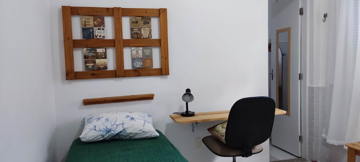 Quarto 5 estrelas e somente pra você Para quem vem a trabalho, estudo ou desejam ter um local para descanso com ótimo custo-benefício enquanto passeiam e conhece a cidade Área privilegiada de Natal 300 metros de um supermercado Perto de restaurantes e lanchonetes Pouco mais de 1 km da Praia dos Artistas Quarto/WC privativo compartilhando somente os portões e corredores de acesso ao quarto Cama solteiro Janela com grade para corredor Bons descontos acima de 7 e 28 dias Veja todas as fotos