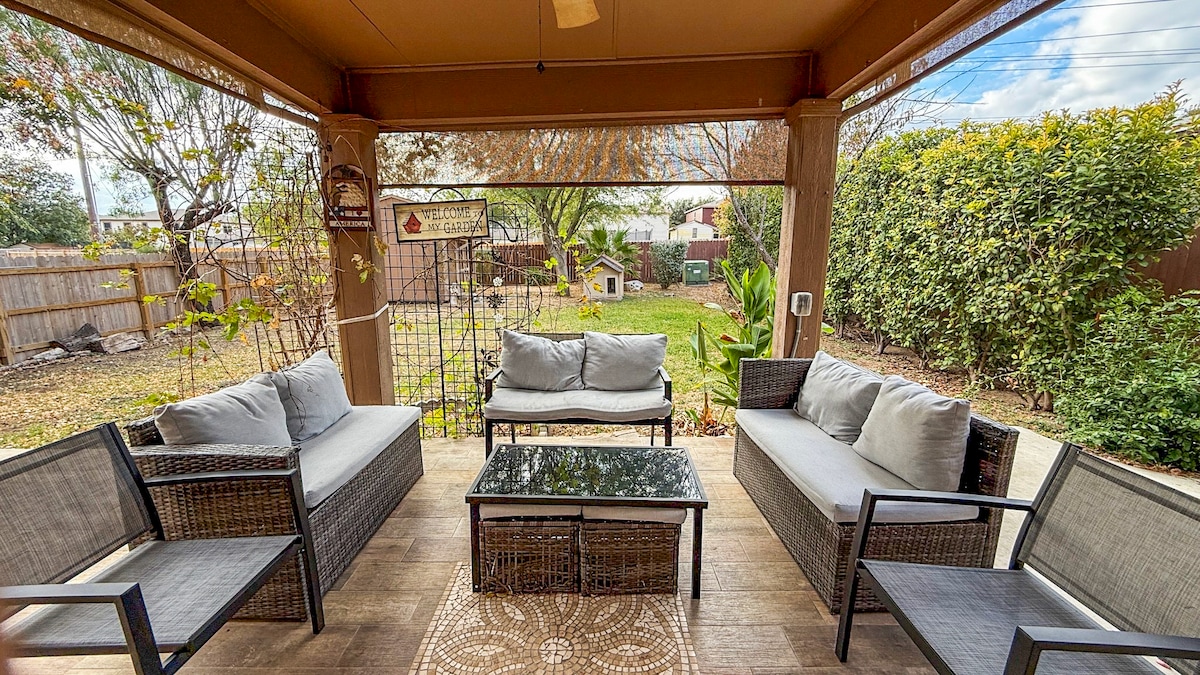 Beautifully renovated home perfectly located for BMT graduations or a family trip to Seaworld. Enjoy fully equipped kitchen, plenty of games for the family, and a great outdoor firepit under the pergola. The house is a fully furnished with 3 bedroom and 2 bathrooms, high speed internet, security cameras/ alarm for peace of mind. Local amenities: SeaWorld - 10 mins Lackland - 14 mins Downtown Riverwalk - 20 mins Fiesta Texas - 22 mins *Easy guest access with our automated door keypad.