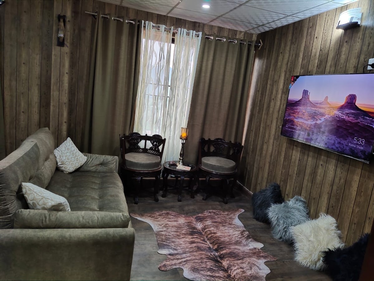 Located on a 15 minutes drive to Mall Road and other popular attractions, this apartment is ideal for those seeking relaxation. This cozy and spacious two-bedroom apartment offers a comfortable living experience.The apartment features a spacious living space, two well-furnished bedrooms with cozy beds and attached bathroom. Ideal for families or small groups, this apartment provides a homely atmosphere with all the amenities for relaxing stay, with a valley view of the beautiful green Murree.