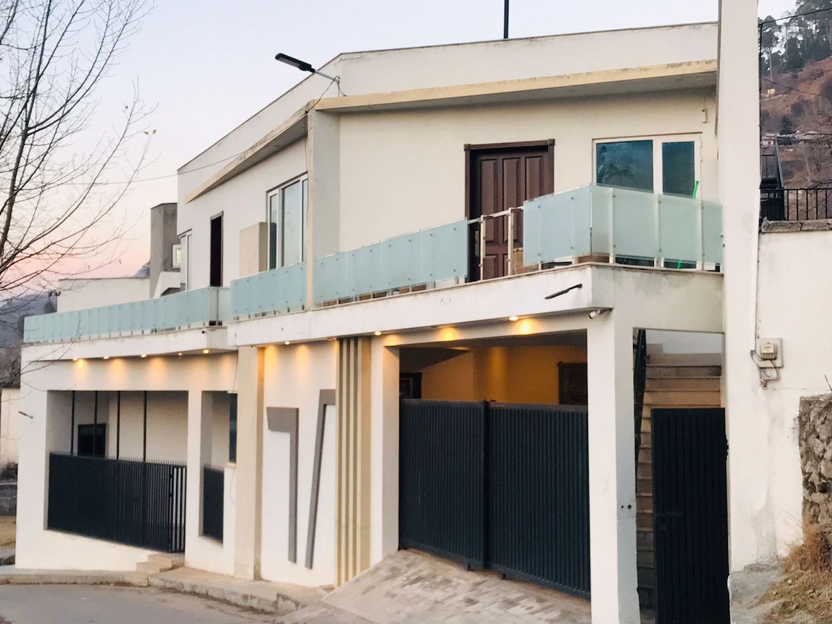 *Entire Brand new stylish unique design Penthouse Apartment - 3 en-suite bedrooms - 2 king beds 1 bunk bed - Entire Private Terrace *Peaceful & secured location on Lower Jhika Gali Road, MIT Murree *5 mins drive to Jhika Gali Bazar *10 mins drive to Kashmir Point and Mall Road Murree - Self catering - 1 Powder Room - Open plan Kitchen and lounge - 1 big terrace with ample seating space for 10-12 ppl - BBQ Grill - Secured Building with car park and elevator - Couples & Families only.