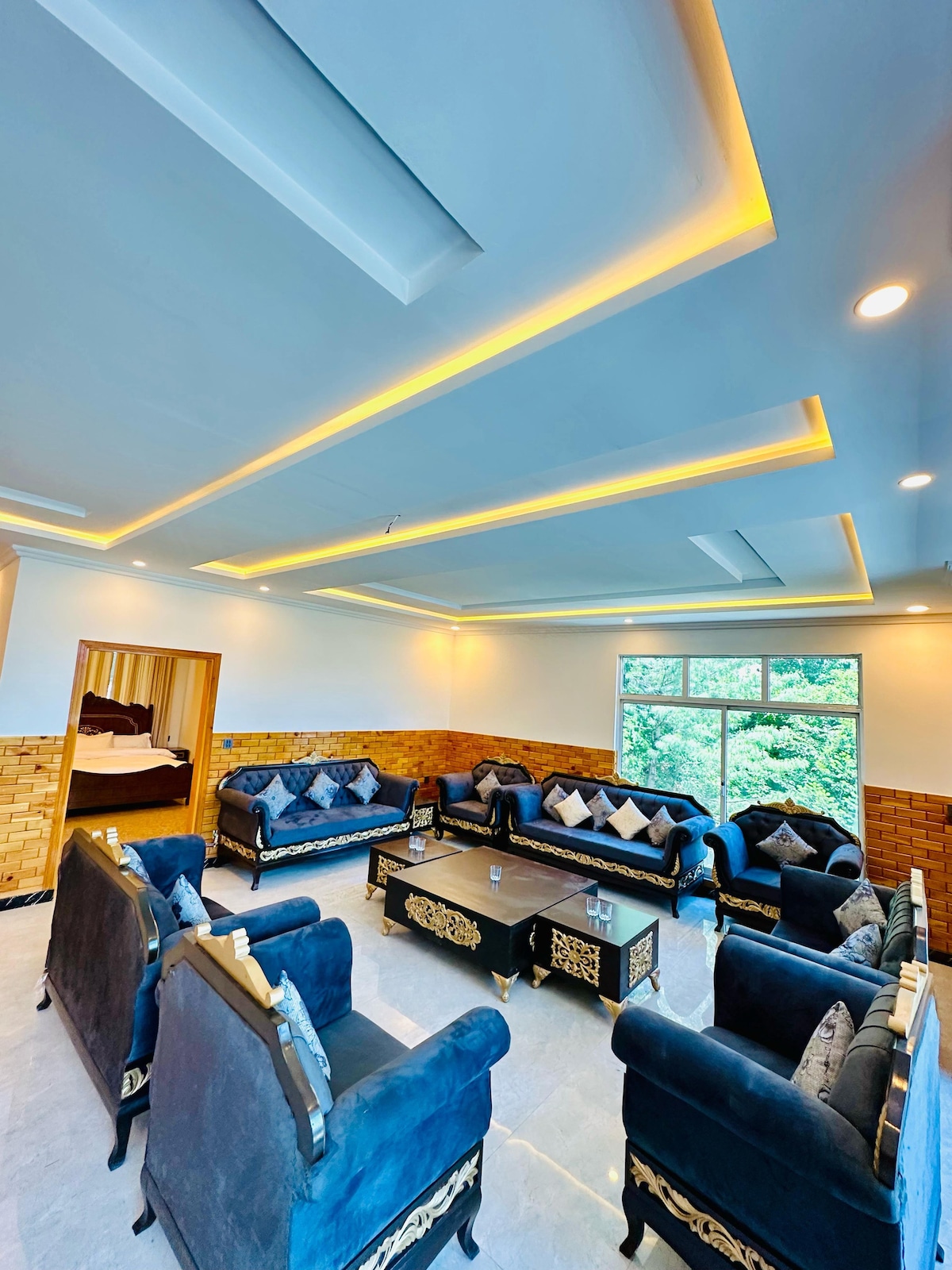 This Executive Room at Hotel Hilla offers a comfortable stay in the peaceful surroundings of Nathia Gali. The room accommodates up to 3 guests and includes one king-size bed and one sofa bed. Each room has a private attached full bathroom with hot water, fresh linens, towels, and essential guest amenities. Guests can access the hotel lobby, on-site restaurant, café, outdoor sitting area, and parking. Heating is available for cooler weather, with staff assistance throughout the stay.