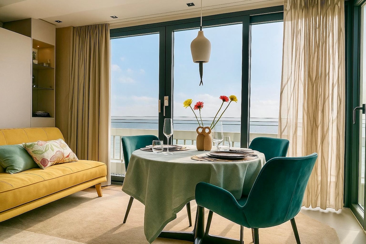 The apt. (40m2) is located right in front of the beach and next to the dunes. From your appartment you have a breathtaking view over the sea. It will comfortably fits 2 and is completely new, finished in June 2021. Cozy living room with TV, fully equipped kitchen, comfortable king size bed, perfect WIFI and nice bathroom. You have a private parking spot right next to the apt, as well as a private terrace with dining table and comfy beach chairs. Your dog is very welcome, we allow only 1 dog.
