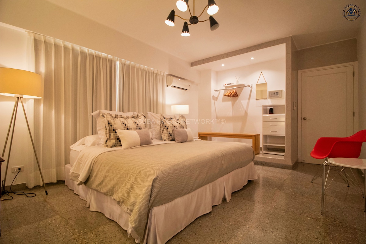 Loft de diseño con dos dormitorios climatizados, cada uno con su baño independiente y cama matrimonial. Ubicado en el Vedado, núcleo comercial y residencial de La Habana, rodeada de impresionantes hoteles de lujo, casas señoriales de estilo ecléctico, embajadas, que cuenta además, con gran variedad de bares, restaurantes, museos, galerías. Zona de grandes avenidas con frondosos arboles. Ubicado en zona hospitales donde apenas hay apagones. Incluye teléfono con local SIM CARD + INTERNET ACCESS.