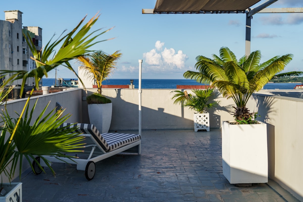 Sensacional espacio en el Vedado, a dos pasos del Malecón, con vistas a la ciudad y el mar, le invitamos a relajarse y aislarse del bullicio citadino, gracias a la espaciosa terraza que domina el barrio. Una habitación, salón y baño independiente. Cama King size que puede separarse en dos camas twin . WIFI gratis . Contamos con paneles solares y baterías que permiten tener electricidad y funcionamiento de los equipos menos los AC. Para esta situación tenemos ventiladores que podrás utilizar.