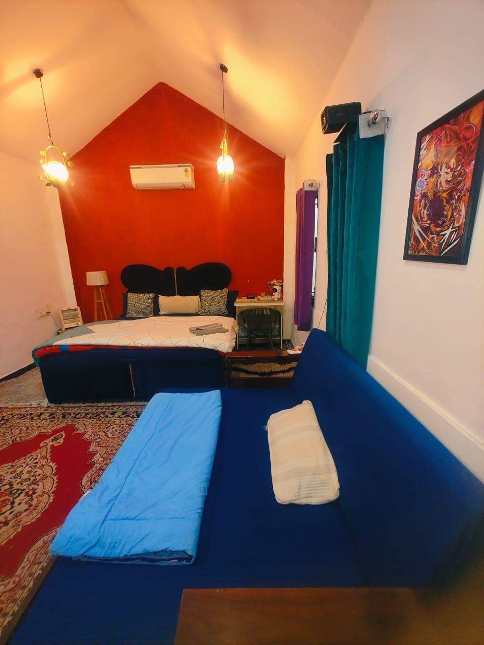 Welcome to this quaint outhouse with a two bedroom and kitchen,farm like guest house. Taste the essence of slow living with its neatly manicured lawn and a kitchen garden. Pluck your own veggies from our vegetable garden, all untouched by the chaos of city life. With birds chirping and trees dancing, take a fresh breath of life and heal your mind and body alike in this serene and spacious house. Be as active as your heart desires and forget your worries, for it is more than just a place to stay!