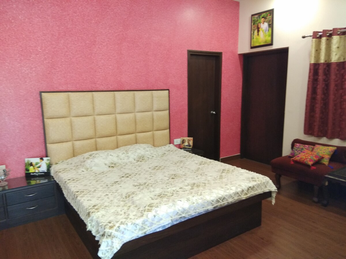 This is a Lower Ground Floor i. e. basement space with 5 ft below ground and 4 ft above, so that the windows are in their normal positions. The place is huge, built on a 200sq m. plot, so you have lots of space. Special attention has gone into details, so that it's very livable and comfortable. Other than the double bed, the room being very large has 2 wide, comfortable leather sofas and 2 easy chairs along with a coffee table. NO VISITORS ARE ALLOWED ! Only paying guests are welcome .