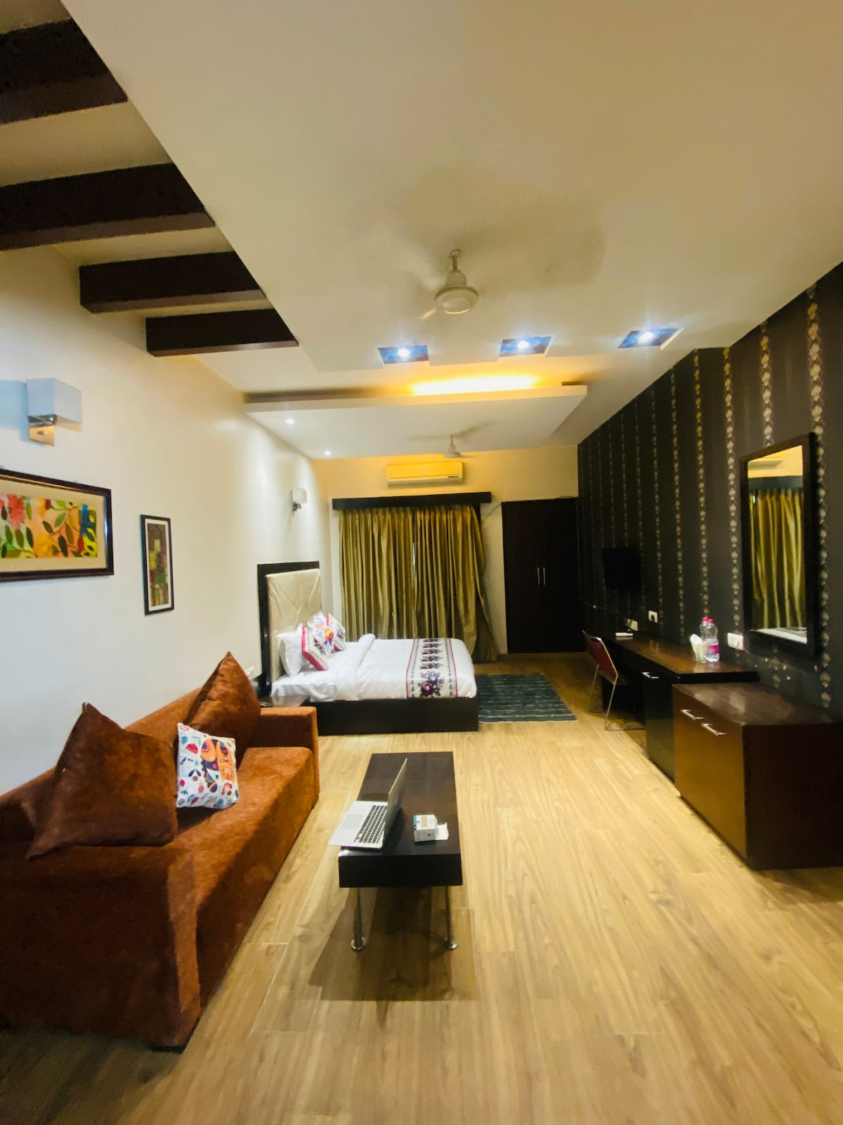 Walkable to the most happening place in Jaipur, WTP and Gaurav Tower. Located just 3.5 kms from Jaipur Airport with a separate entrance, private bathroom, a fridge/toaster/kettle provided, with a workspace, balcony & air conditioning. The room has wooden flooring to provide warmth and comfort. We keep the room sanitized for your safety. Many eating joints nearby provide lunch and dinner. We strive to provide personalized care and warm hospitality without intruding your privacy.