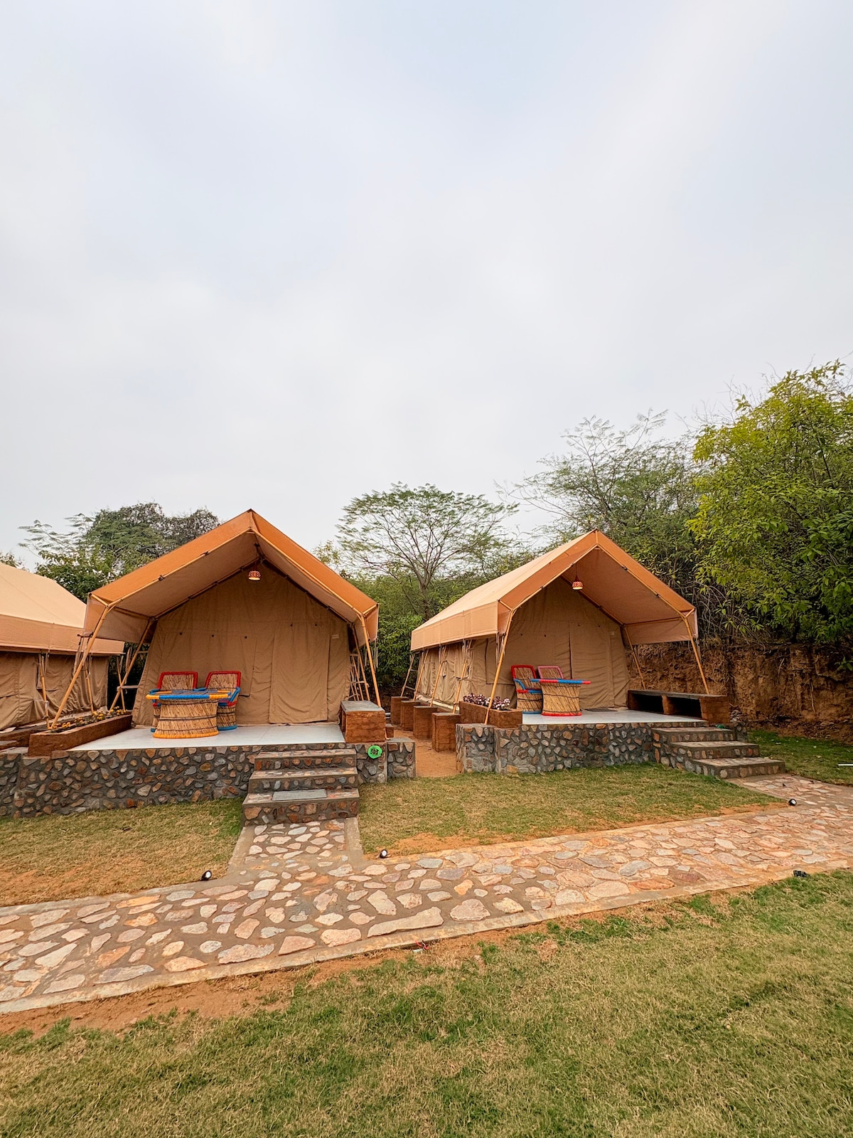 Stay close to nature at Kala Kutir, an luxury Tent retreat just 15 minutes from the Taj Mahal. Surrounded by birds, trees, and open fields, it offers Luxury tent rooms, peaceful courtyards, and a swimming pool (operational in summer). Perfect for artists, couples, and travellers seeking calm, creativity, and connection. Enjoy slow mornings with chai under neem trees, evenings by the firepit, and nights under starry skies — where Agra’s heritage meets simple, soulful, and sustainable living.