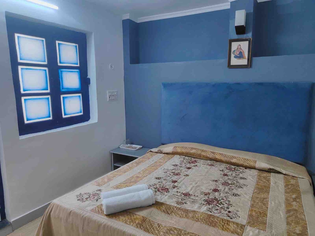 A peaceful stay on the terrace floor with a beautiful bedroom. The place is located in the heart of South Delhi, Lajpat Nagar IV. Attached bathroom, kitchenette and tv available.