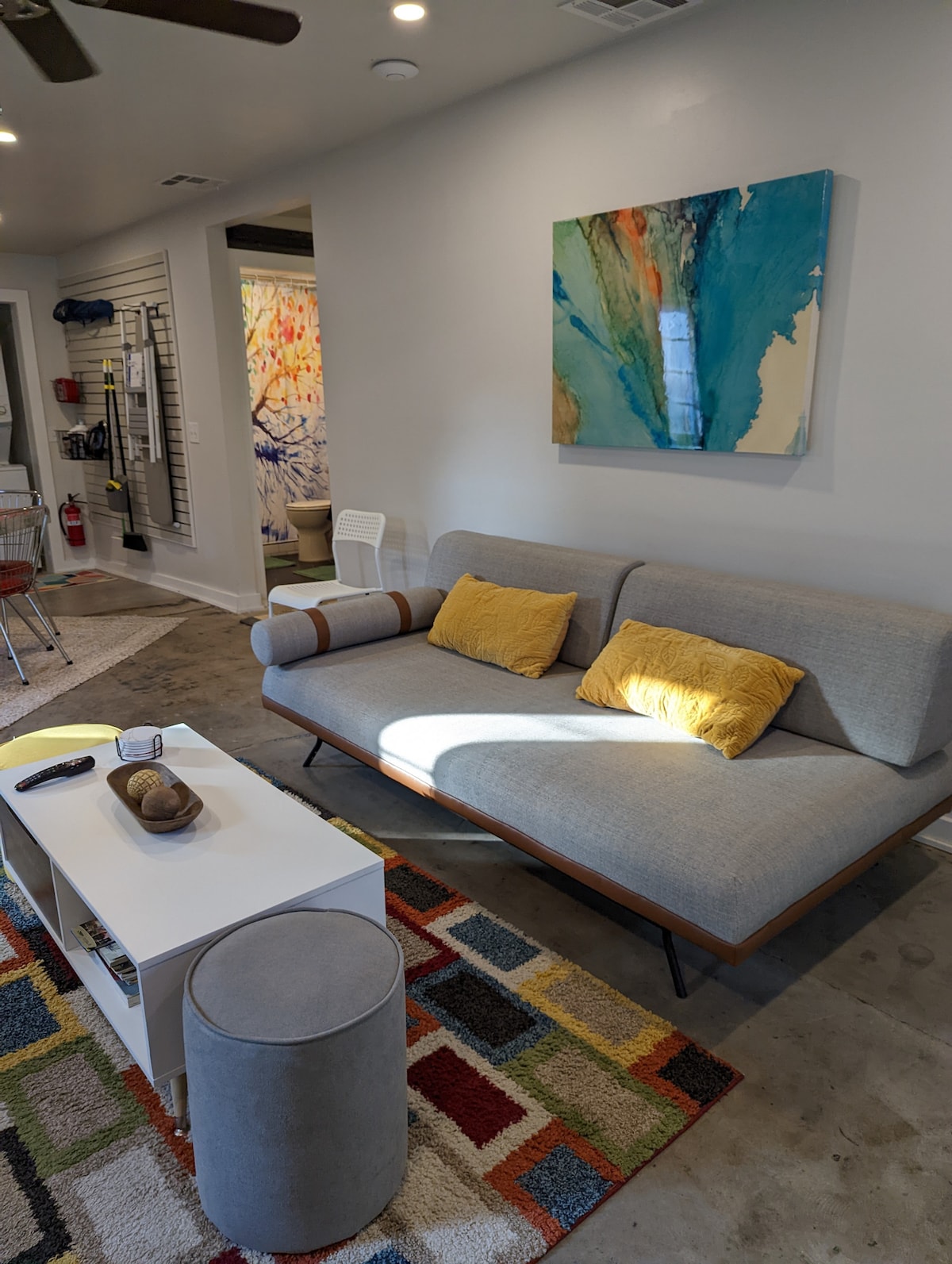 The Traveler’s Nook in OKC is a cozy and cute guest suite conveniently located in the NW of the city. The suite is newly built. It has a private entrance, a charming patio, stylish bathroom, a comfortable Queen size bed, a convertible sofa bed, mini fridge, Smart TV with all the main streaming apps, and a coffee station with coffee maker and microwave. Dishes, mugs, silverware, and glasses are provided!