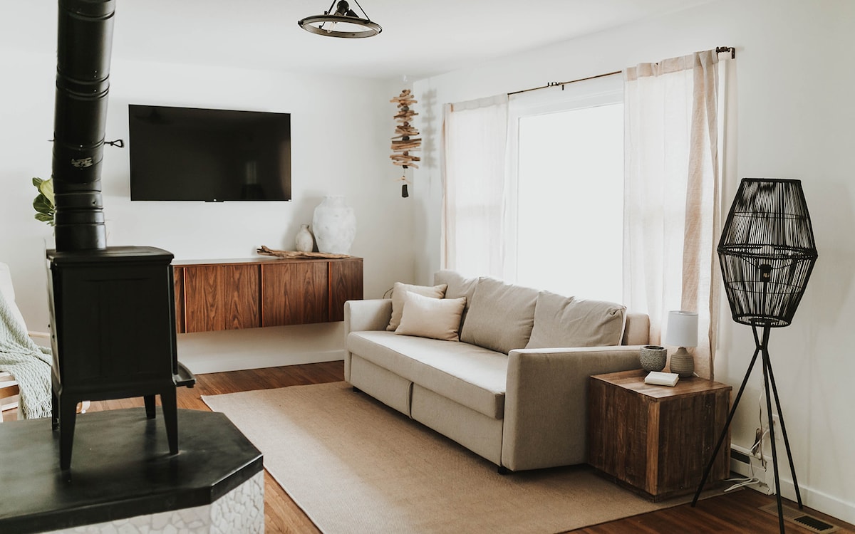 A cozy get-a-way in the heart of iconic Wabasha, Minnesota. What was once the candy shop, this cabin conversion boasts the best outdoor living space, a full kitchen + BBQ, a gas fireplace and is centrally located, just blocks from the Mississippi, National Eagle Center, Eagles Nest Coffee shop and so much more!! With a brand new Mint Tuft and Needle queen mattress you can bet on a comfortable night sleep!