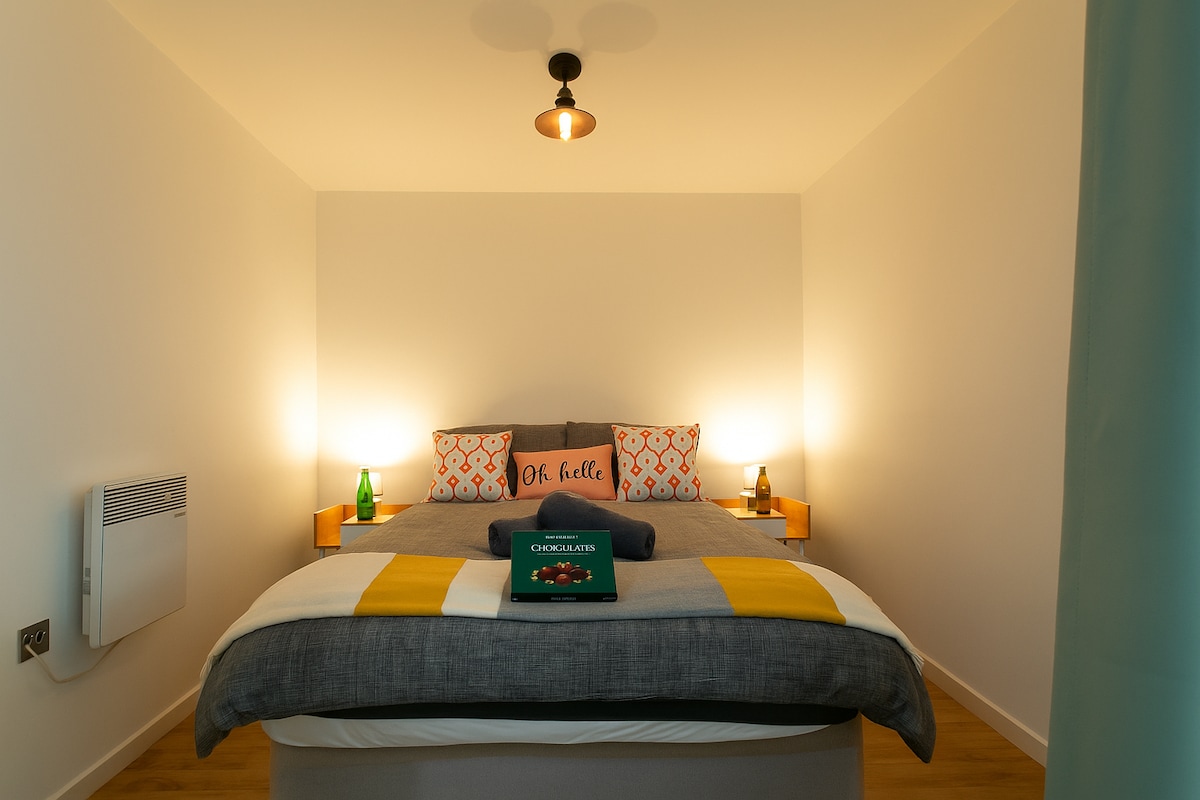 宽敞的双卧公寓,靠近城市,提供免费停车位
