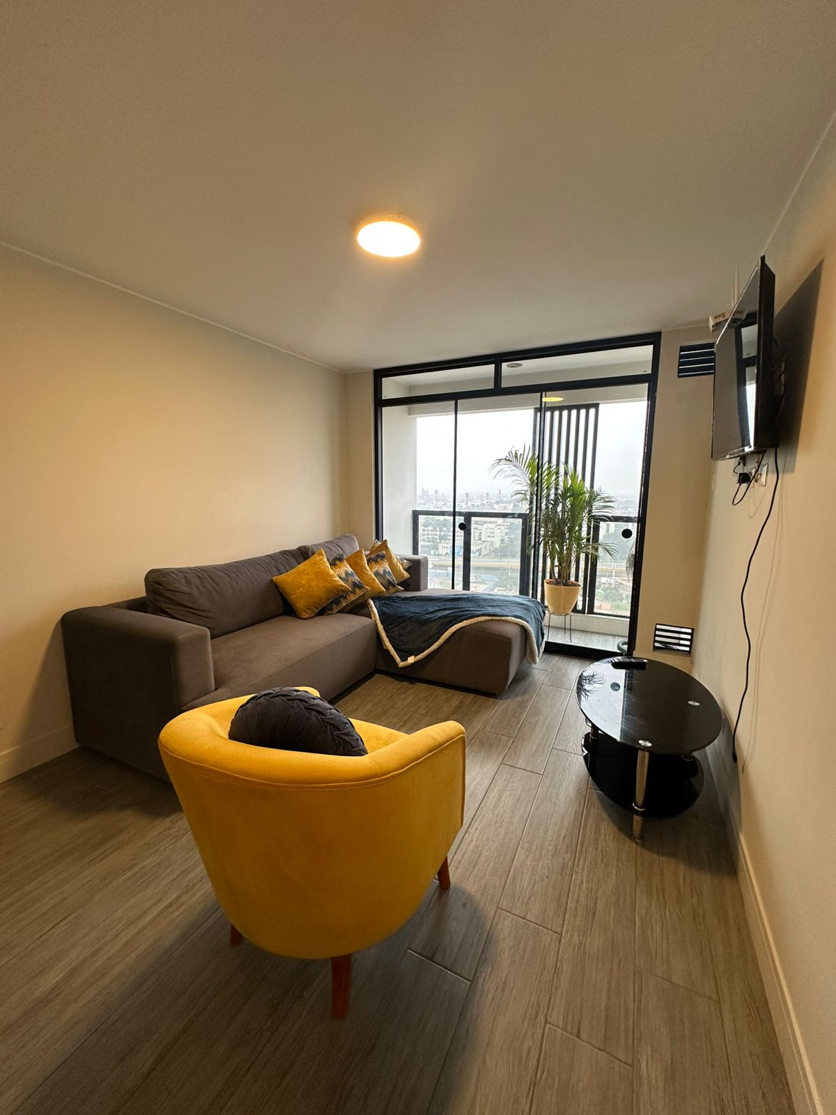 Nestled on the fifth floor of a modern building in Lima's central district, this delightful apartment welcomes you to experience the vibrant charm of the city. With its snug, intimate rooms, it offers a cozy retreat where you can truly feel the pulse of Lima's bustling neighborhood and immerse yourself in local life.