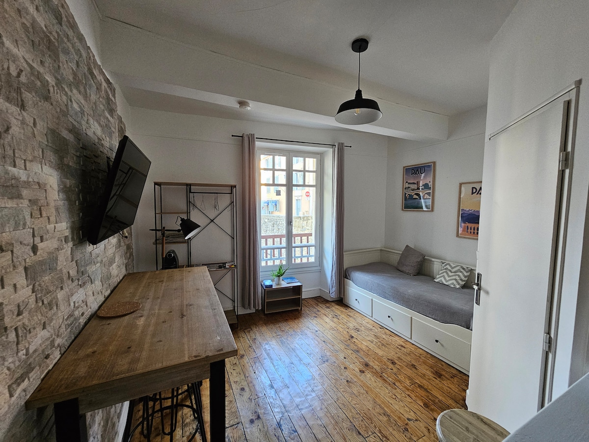 🏡 Tiny'stud – Charmant studio de 14 m² en hyper-centre, refait à neuf ! ✨ Cosy et moderne, il offre un salon avec canapé et TV 140 cm 📺, une kitchenette équipée 🍽️, une salle d’eau 🚿 et un coin nuit en mezzanine 🛏️ (lit 160x190). 📍 Idéalement situé dans le quartier du Château de Pau, proche commodités et parkings. Profitez des restaurants, boutiques et sites historiques à deux pas ! 💤 Literie neuve (2025) avec matelas haut de gamme pour des nuits ultra confortables ! ✨