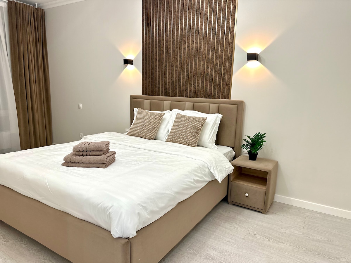 Enjoy a comfortable stay in a modern hotel-style apartment located ultra-centrally in Chișinău, perfect for city breaks, business trips or relaxing stays. The location allows you to explore the city on foot, with quick access to cafés, restaurants, shops and tourist attractions. Why choose us • Professional hotel-standard cleaning • Fresh linens and towels • Essential bathroom amenities • Fast WiFi • Smart TV with Netflix • Easy self check-in • Quiet area in the city center