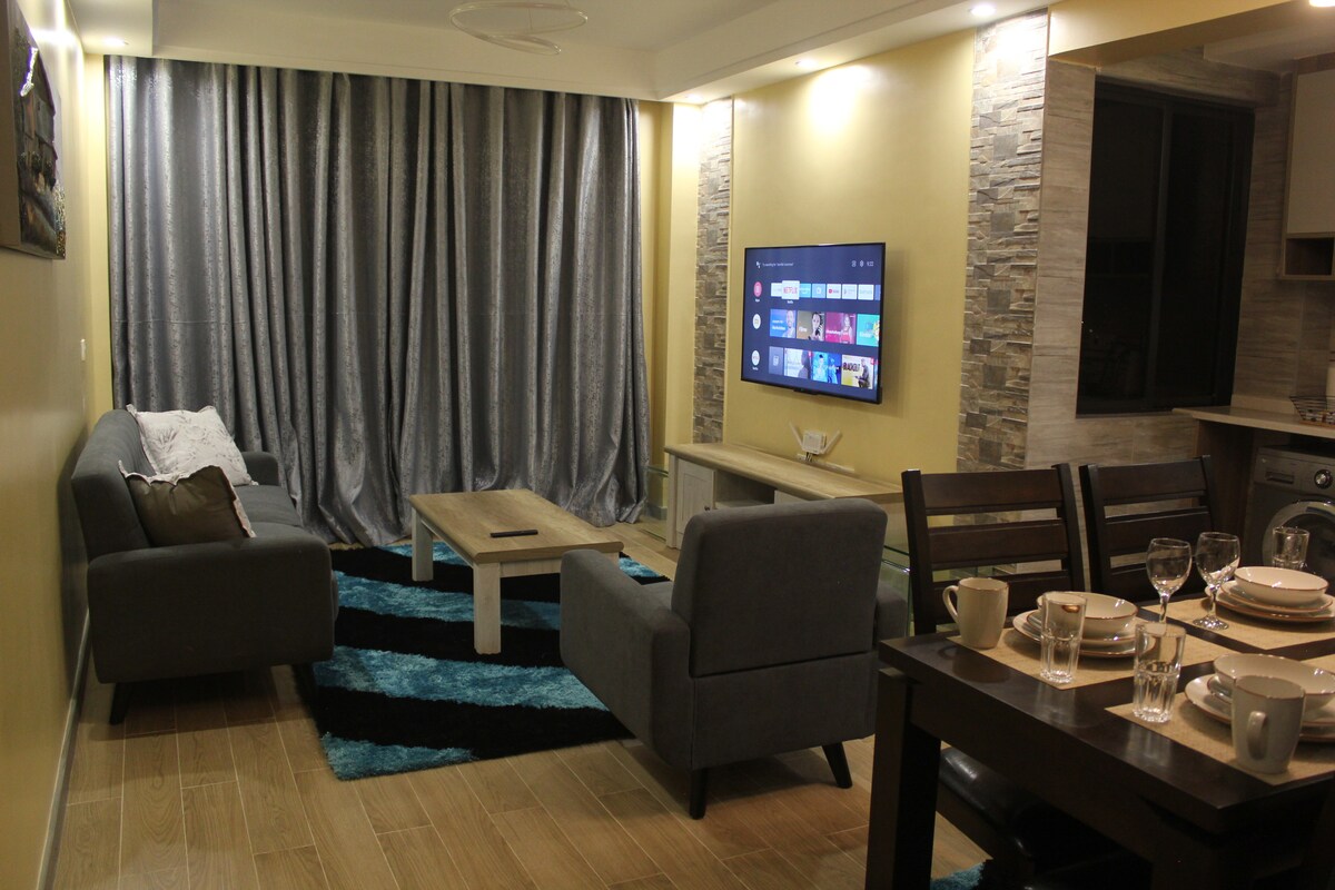 Enjoy a stylish experience at this centrally-located place in Westlands! NEW, Well appointed, UN-approved, modern, 1 BR apartment. Walk to everything: Hotels, Westgate & Sarit malls, forex bureaus, offices, Banks, GTC complex, Broadwalk Mall, restaurants, etc. Our apt is designed for luxury in a private, secure, centrally located serviced flat with world class amenities: Balcony, pool, well equipped gym and BBQ area. Perfect for business, leisure, singles, couples who seek a stylish, secure stay
