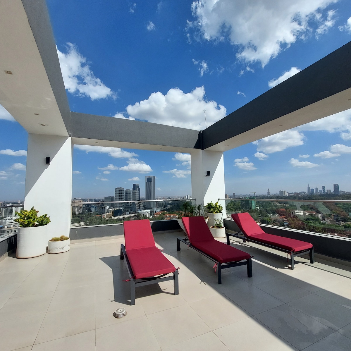 Welcome to SkyNest, perched on the 15th floor in the heart of Westlands, Nairobi. This stylish apartment offers modern luxury and breathtaking panoramic skyline city views. Discover Nairobi at its best with malls, shops, conference centers, and vibrant nightlife just a stroll away. After a day of adventures, return to your urban haven with state-of-the-art amenities. Unwind on your private balcony and soak in the city lights. SkyNest is your experience – where luxury meets location!