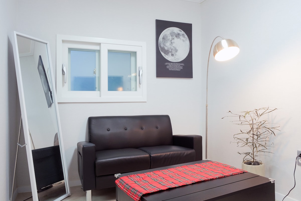位于梨泰院中心地带,干净安静的两居室/咖啡厅,步行5分钟即可到达展厅街/长期住宿折扣