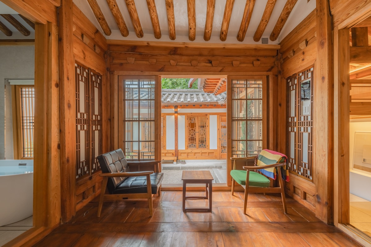 Gotaek (고택) means an old hanok, typically over 100 years old, The Classic-Goteak Seochon chosen by world-renowned artist Nicolas Party for a 6-week, and Filming locationn for famous Korean movie [Architecture 101]. A private luxury Hanok hotel with an outdoor jacuzzi, exclusively for one group, in the heart of Seoul. A stunning architectural gem preserving the charm of traditional Hanok while blending modern sophistication. Its rare loft-style design features state-of-the-art amenities