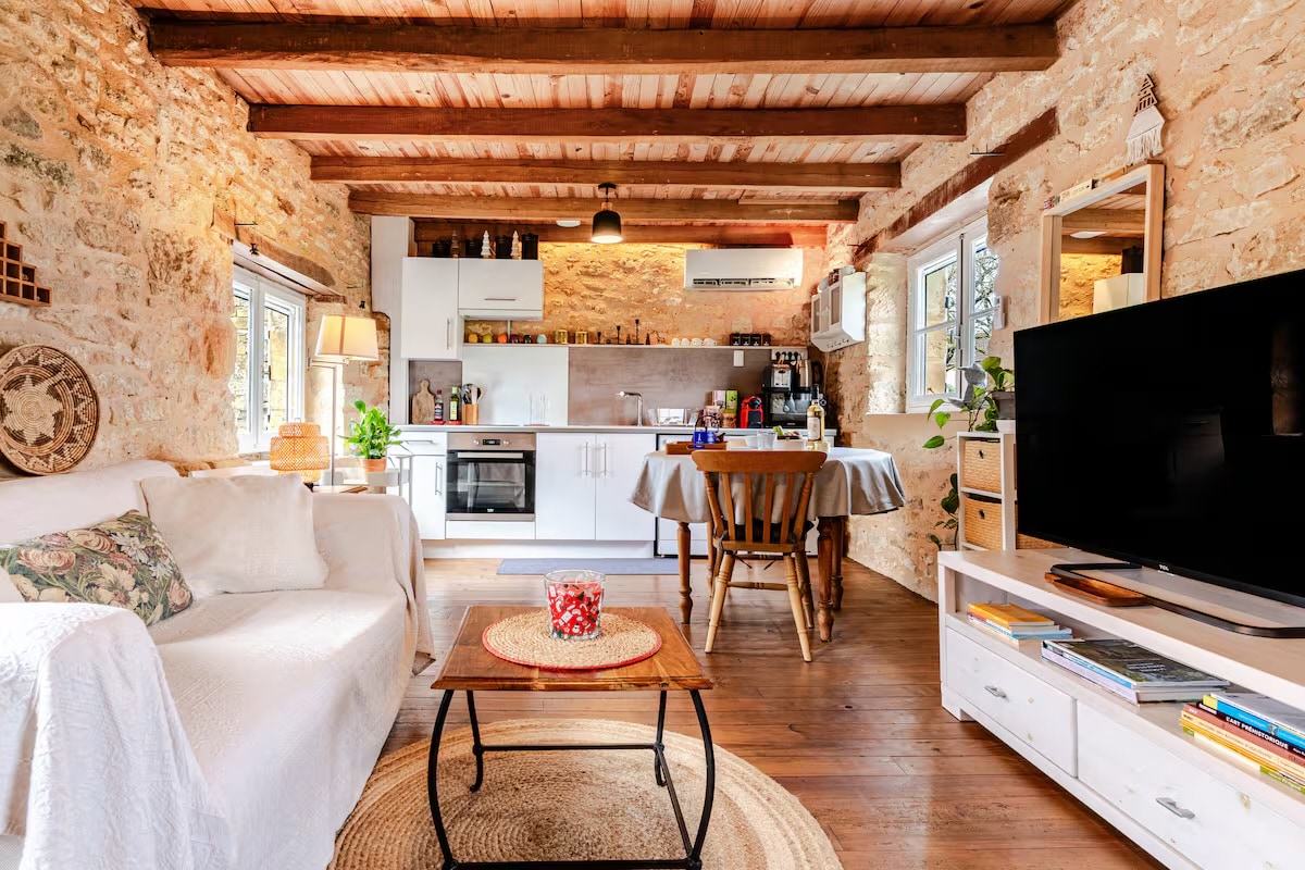 Stone Cottage, 2 Bedrooms, 2 Baths, (Sleeps up to 5 adults) Distinguishing itself from numerous properties listed under Beynac, La Petite Maison enjoys a central location within the village. It stands out as one of the most iconic homes in the area and is featured in many travel guides, blogs, and photo books of the Dordogne region. Positioned along a cobblestone footpath leading to the 12th-century Chateau, this residence offers a medieval adventure for those seeking an immersive experience.
