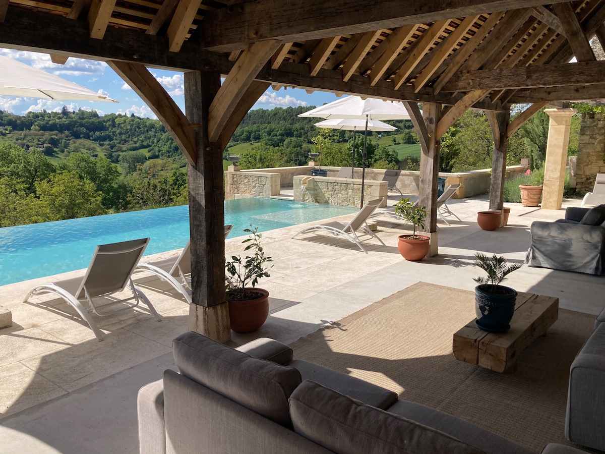 Come for Autumn Winter 2025/6 with a 30% reduction!! (Already applied) A charming farmhouse set in 10 hectares of land, in an enviable position with exceptional views. To be enjoyed at any time of year. Search for orchids in Spring; laze by the (shared) infinity pool in Summer; enjoy roast meats and chestnuts in the fireplace in Autumn or cozy up next to the Christmas tree with family in Winter. Saint Robert, one of ‘Les Plus Beaux Villages des France’, is only a few mins away or 20 min walk.