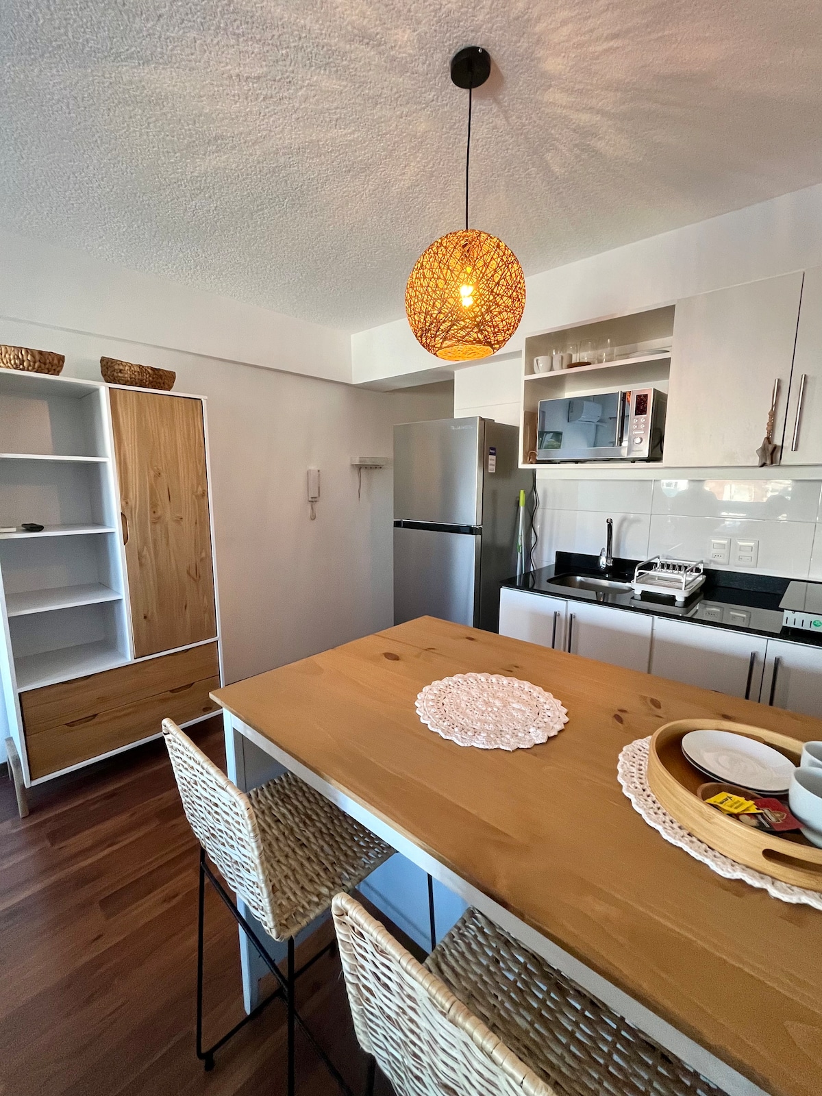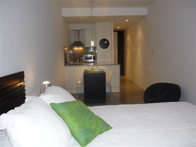 This brand new studio will feel like a little home of yours! From self-entrance to easy access to everything from this centrally located place, you can walk to malls, riverside, coffee shops, restaurants and more. The building counts with a co-work space downstair, equiped with wifi and desks. You will also have your own desk at the aparment with tons of natural light coming in every morning! The kitchen is equiped with basic cooking tools so you can make yourself at home.